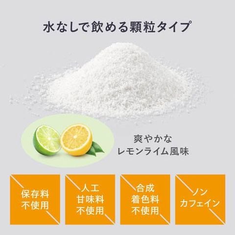 ●レモンライム風味の顆粒タイプで水なしでもお召し上がりいただけます。