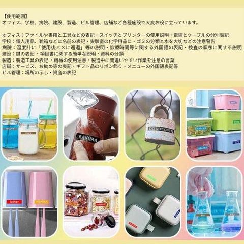 ●オフィス、学校、病院、店舗、倉庫、製造室など、室内と室外いろいろな場所で広く使用されているラベルです。