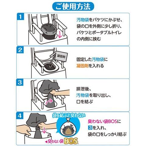 ●驚異の防臭素材『BOS』を使用した処理袋で、処理後の嫌な臭いを徹底防臭するポータブルトイレ処理袋。