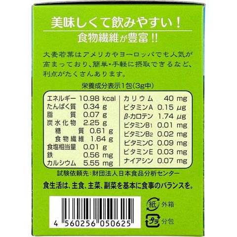 | 大麦若葉末(中国・日本)、ブドウ糖、オリゴ糖 |