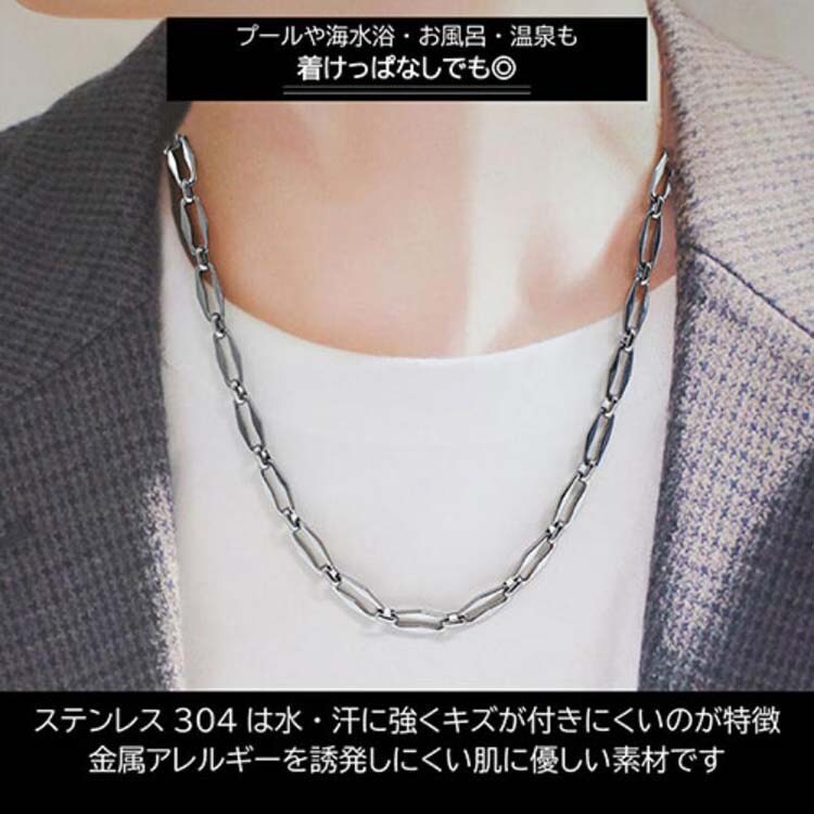 | ・カラー:スチール ・素材:ステンレス ・長さ:50cm(同デザインのブレスレットと連結して70cmのロングネックレスにも) ・保証期間:初期不良対応 |