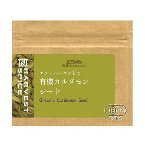 | ・名称・品名:有機カルダモンシード ・原材料:有機カルダモン ・栄養成分表示:本品1袋あたり/エネルギー:31.1kcaL、たんぱく質:1.0g、脂質0.6g、炭水化物:6.8g、食塩相当量:0.0g |