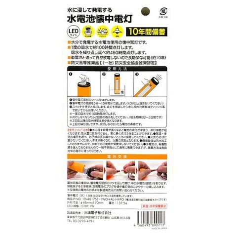 ●水分で発電する水電池使用の懐中電灯です。