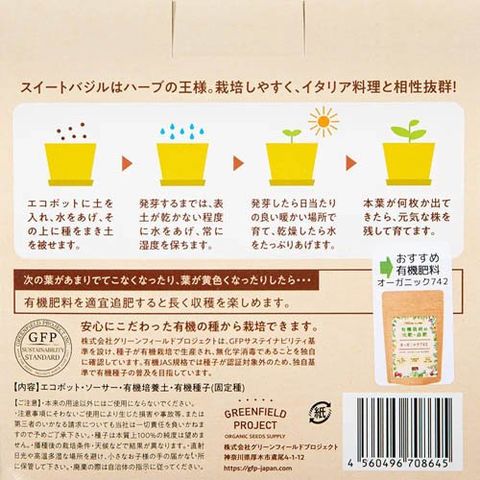 【すべてオーガニックな栽培キット スイートバジル B184の商品詳細】