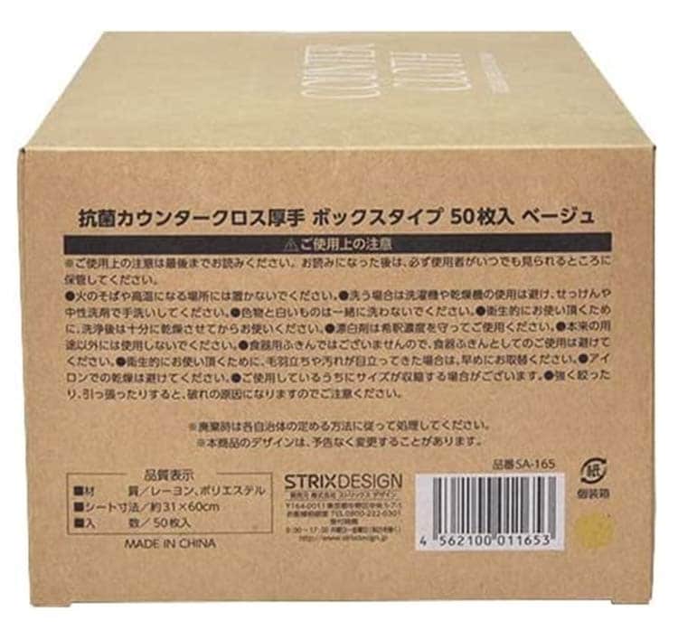 【ストリックスデザイン 抗菌カウンタークロス 厚手 ボックスタイプ ベージュの商品詳細】
