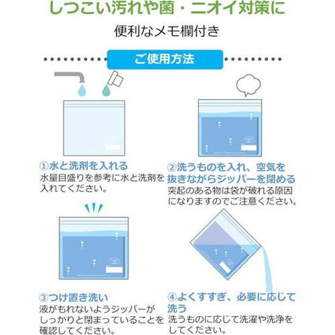 ●つけ置き洗いに便利な、大型のジッパーバッグです。
