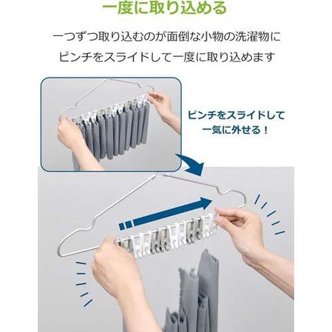 ●ピンチをスライドして洗濯物を一気に取り込めるハンガーです。