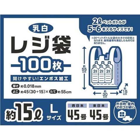 コア レジ袋 手提げ袋 開きやすい エンボス加工 15L L 乳白 FR205 (100枚)