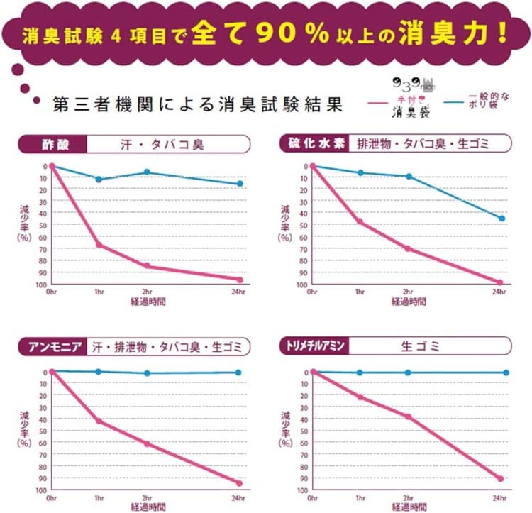 ●第三者機関による消臭試験で4項目すべてで減少率90%以上!