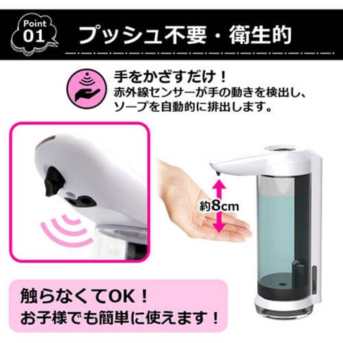 ●触らなくていいので衛生的!お子様でも簡単にお使いいただけます。