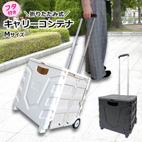 ●たっぷり収納で重い荷物もラクラク運べ、使わないときはコンパクトに折りたためるキャリーコンテナ。