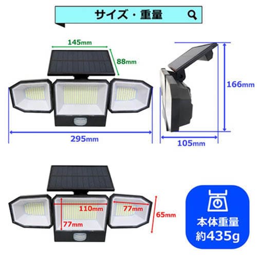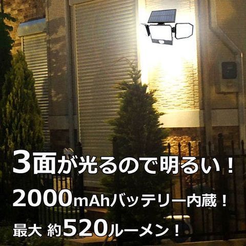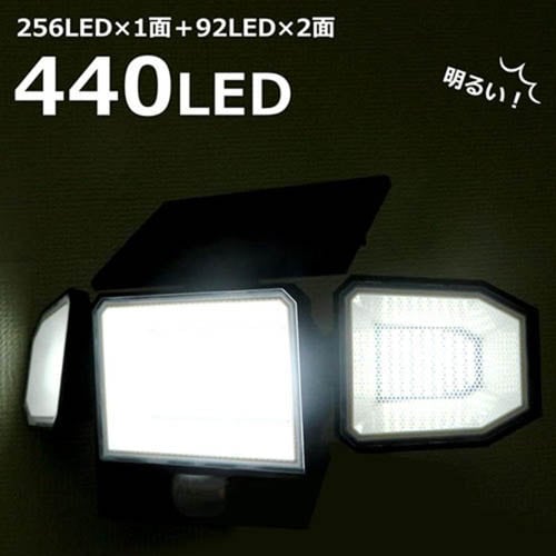●3面が光るセンサーライト!合計440個のLEDを搭載し、広範囲を明るく照らすことができます。