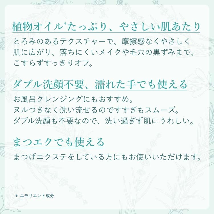 ●とろみのある植物オイルが落ちにくいメイクや毛穴の黒ずみまで、こすらずスッキリ落とします。