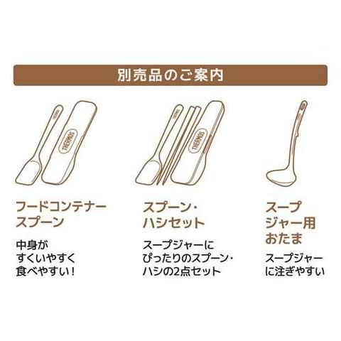 | 本体寸法:約幅9.5*奥行9.5*高さ13.5cm 重量:約0.3kg 容量:0.5L 口径:約7.2cm 保温効力(6時間):63度以上 保冷効力(6時間):11度以下 材質:本体:ステンレス鋼(アクリル樹脂塗装)/外フタ:ポリプロピレン(発泡ポリプロピレン内蔵)/内フタ:ポリプロピレン/ベンパッキン:シリコーンゴム/シールパッキン:シリコーンゴム |