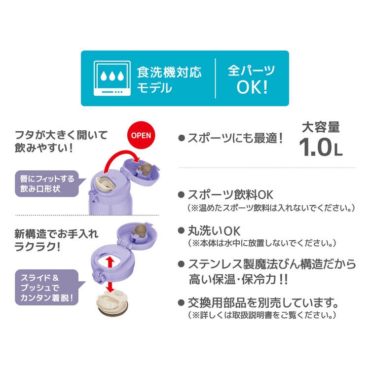 【サーモス 真空断熱ケータイマグ 食洗機対応 1.0L スモークパープル JNL-S1000 SMPLの商品詳細】