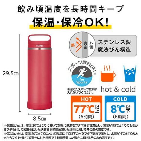 | 本体寸法:約幅8.5×奥行8.5×高さ29.5cm 実容量:1L 口径:約4.4cm 保温効力:77度以上(6時間) 保冷効力:8度以下(6時間) 材質:内びん:ステンレス鋼/胴部:ステンレス鋼(ポリエステル樹脂塗装)/フタ:ポリプロピレン(発泡ポリプロピレン内蔵)/パッキン・フタリング:シリコーンゴム ※食洗機対応モデルとなります。 |