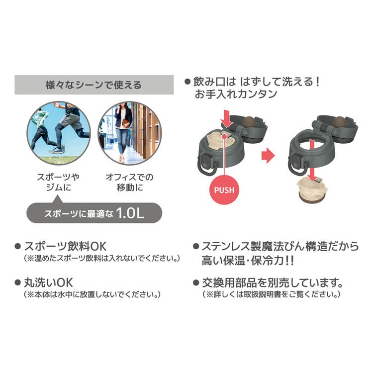 【サーモス 真空断熱ケータイマグ 水筒 1.0L ダークグレー JOS-1000 DGYの商品詳細】