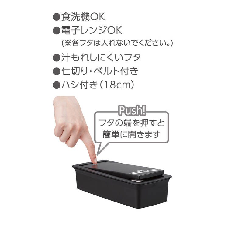 | 本体寸法:約幅21.5×奥行9.5×高さ5.0cm 本体重量:約0.2kg 容量:700ml 材質:フタ・本体・仕切り:ポリプロピレン / ハシフタ:ABS樹脂 / パッキン:シリコーンゴム / ハシ:飽和ポリエステル樹脂 |