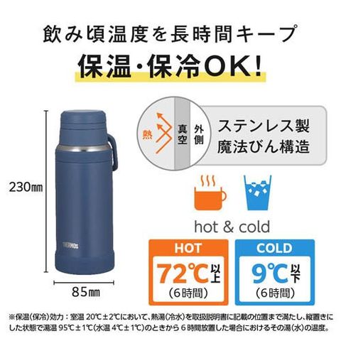 ●ステンレス製魔法びん構造だから高い保温・保冷力!