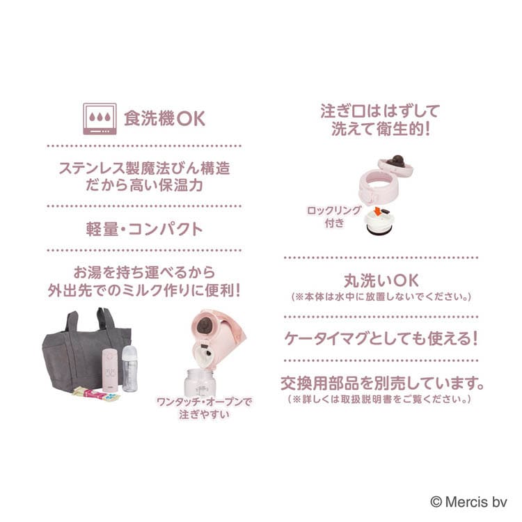 ●お湯を持ち運べるから外出先でのミルク作りに便利!