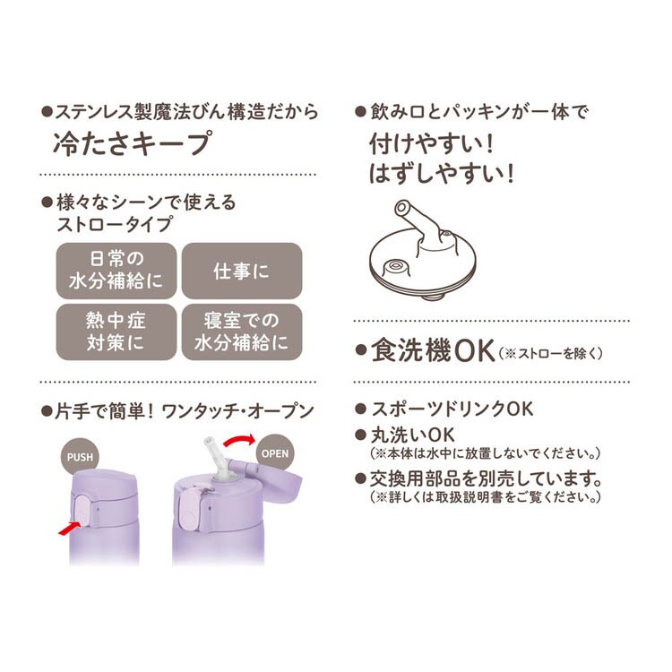 ●ステンレス製魔法びん構造のため冷たさをキープ