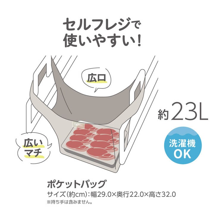 ●セルフレジで使いやすい!小さくたためるポケットバッグ