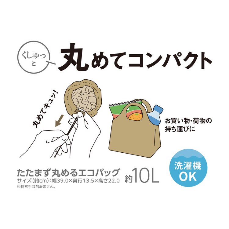 ●くしゅっと、丸めてコンパクト!たたまず丸めるエコバッグ