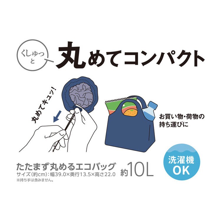●くしゅっと、丸めてコンパクト!たたまず丸めるエコバッグ