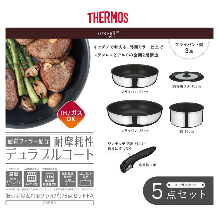 サーモス IH対応 取っ手のとれるフライパン5点セットFA ステンレス KSF-5A S (1セット)