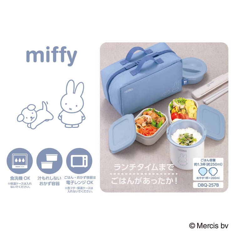 サーモス 食洗機対応 保温弁当箱 250ml アッシュブルー ミッフィー DBQ-257B ASB (1セット)