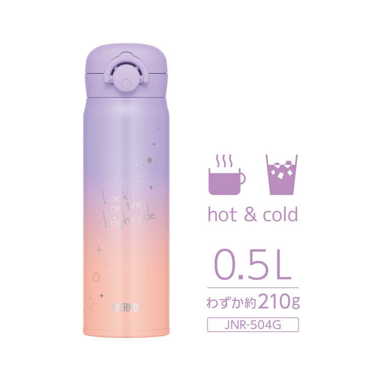 | 本体寸法:約幅6.5×奥行7.0×高さ22.0cm 重量:約0.2kg 容量:0.5L 口径:約4.0cm 保温効力(6時間):68度以上 保冷効力(6時間):10度以下 ★材質 内びん:ステンレス鋼 / 胴部:ステンレス鋼(アクリル樹脂塗装)/ フタカバー:ABS樹脂 / フタ・せん本体・飲み口:ポリプロピレン / フタパッキン・せんパッキン:シリコーンゴム |