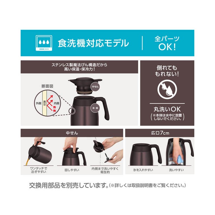 【サーモス 食洗機対応 ステンレスポット 1.5L ブラウン TTG-1500 BWの商品詳細】