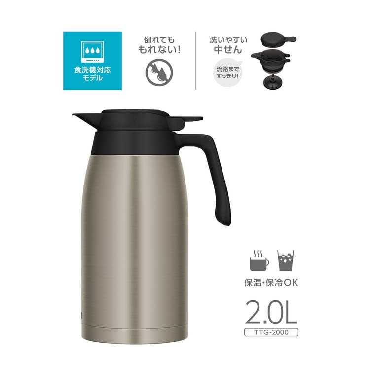 【サーモス 食洗機対応 ステンレスポット 2.0L ステンレス TTG-2000 Sの商品詳細】