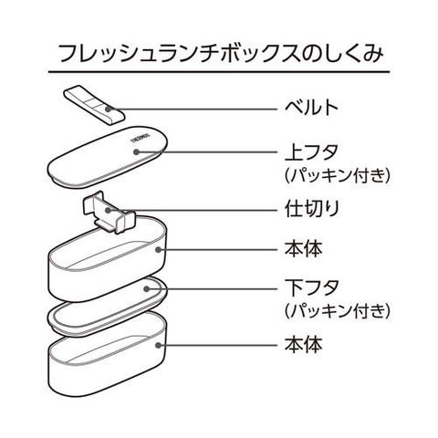 | 本体・上フタ/下フタ(パッキン付き)・仕切り・ベルト |