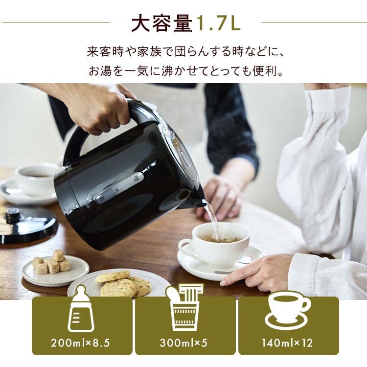 ●大容量1.7Lの電気ケトルです。