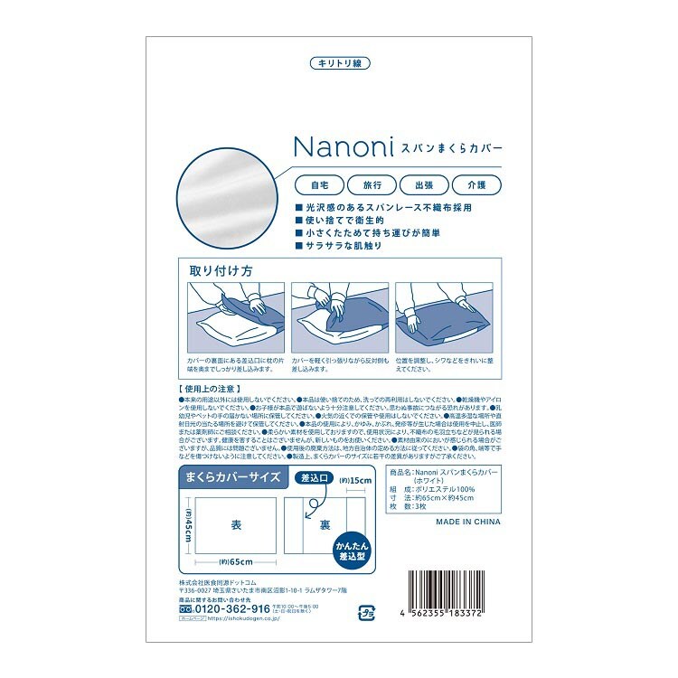 Nanoni スパンまくらカバー(ホワイト) (3枚)