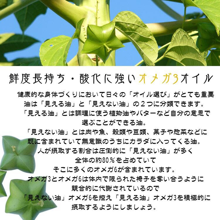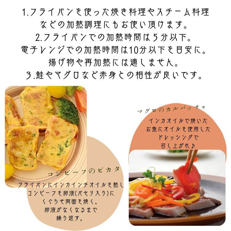 ●オメガ3オイルですが、加熱調理に使えます。サチャインチの香りが苦手な方にもオススメします。(揚げ油としての使用はお控えください)