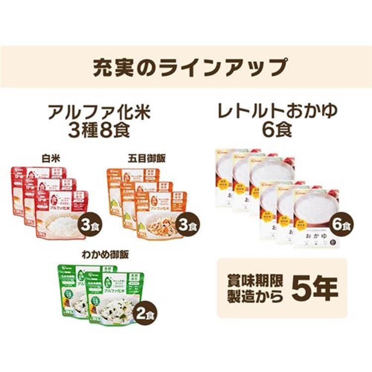 (非常食セット/セット/アルファ化米/α米/おかゆ/お粥/白がゆ/お米/ご飯/防災食セット/保存食セット/避難/防災/災害用/非常用食品/非常用/備蓄/常温保存/詰め合わせ/詰め合せ)