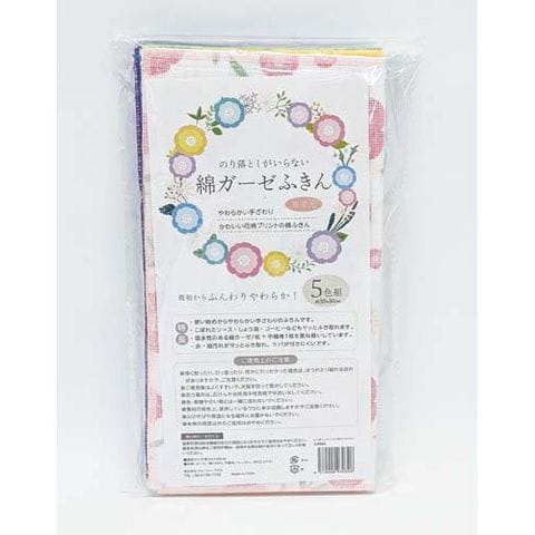 のり落としがいらない綿ガーゼふきん (5色組)