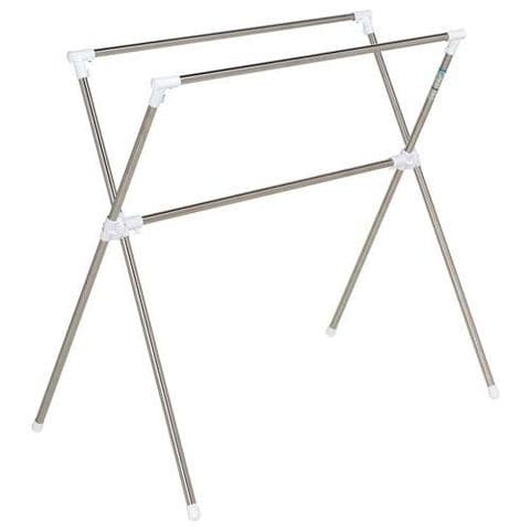 | ★サイズ:使用時:幅約128×奥行約76×高さ約115cm ★収納時:幅約128×奥行約8×高さ約131cm ★製品重量:約3.3kg ★材質:主材/ステンレス巻きスチールパイプΦ29.4/Φ25.4mm ★部品:ABS樹脂・PP樹脂・スチール(メッキ) ★耐荷重:かけられる重さ/全体で約10kgまで |