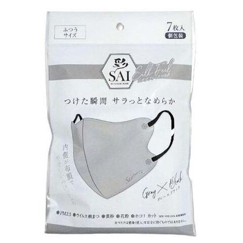 彩 SAI 立体シルクフィールマスク ライトグレー×ブラック ふつうサイズ (7枚入)