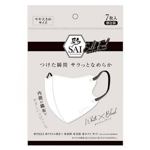 彩 SAI 立体シルクフィールマスク ホワイト×ブラック やや大きめサイズ (7枚入)