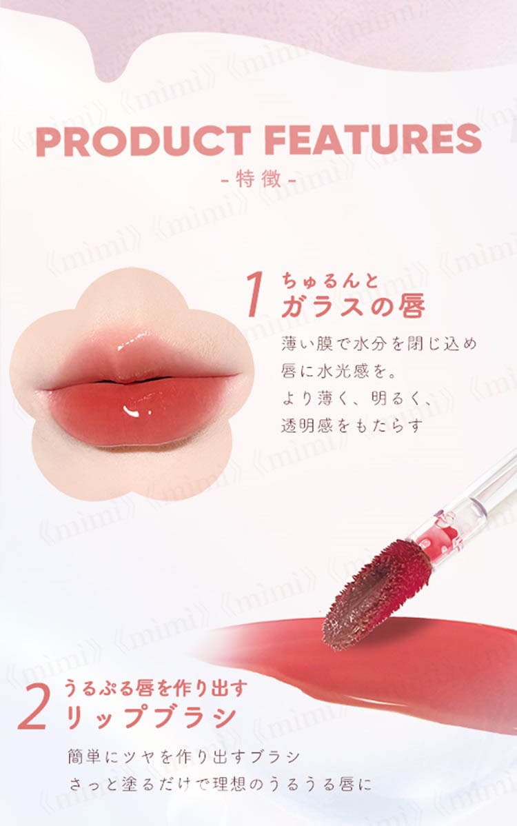●薄い膜で水分を閉じ込め、唇に水光感*をあたえ、鮮やかで特別な日常に。