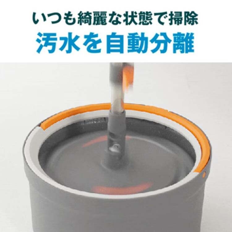 ●モップを上から押すだけ、綺麗な水で簡単洗浄。