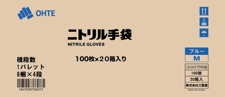 三国堂 ニトリル手袋 薄手 粉なし 食品衛生法適合 Mサイズ ブルー (100枚×20箱入)