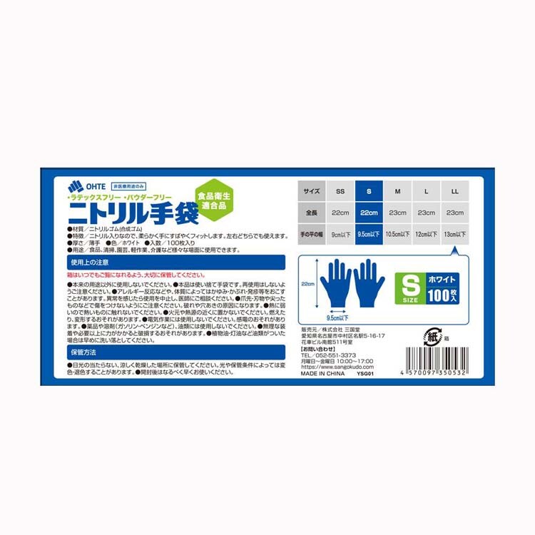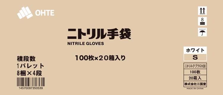 三国堂 ニトリル手袋 薄手 粉なし 食品衛生法適合 Sサイズ ホワイト (100枚×20箱入)