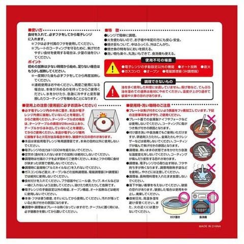 ・必ず電子レンジ中の中央に置き、本品が電子レンジ内側に接触していないことを確認してからご使用ください。