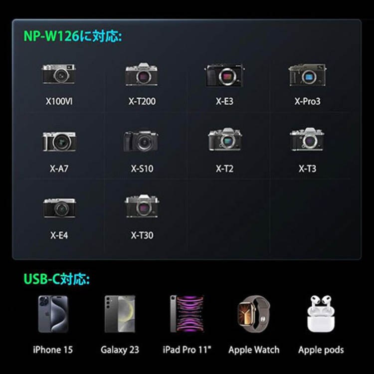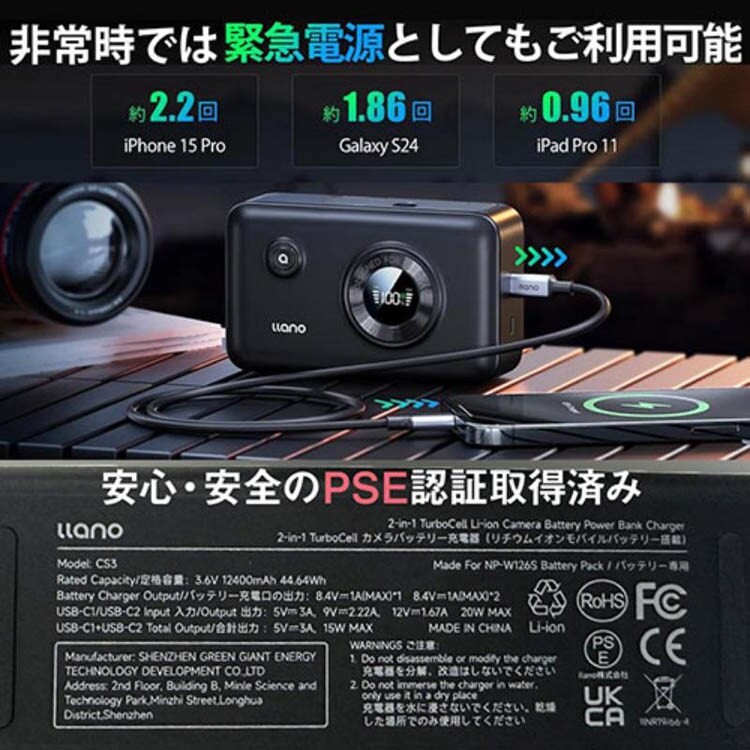 【llano CS3 2in1 カメラバッテリー充電器 NP-W126用 CS3W126の商品詳細】