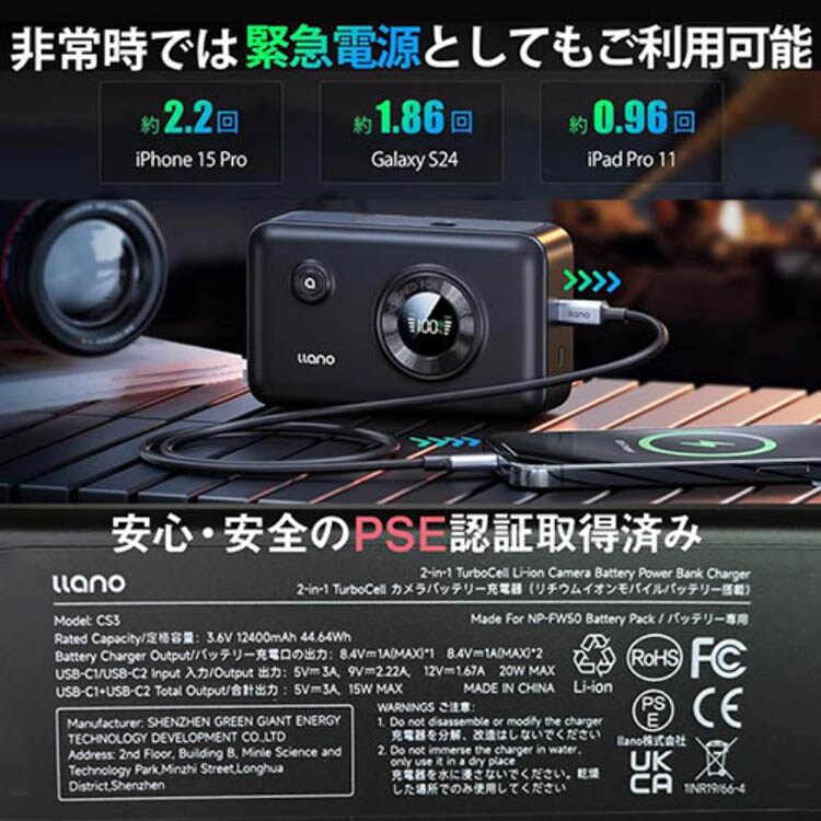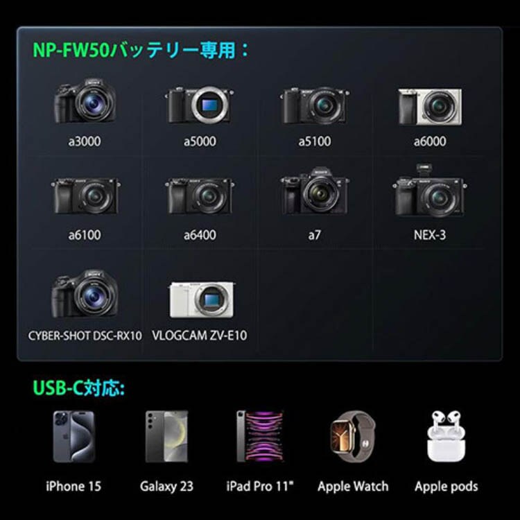 【llano CS3 2in1 カメラバッテリー充電器 NP-FW50用 CS3FW50の商品詳細】