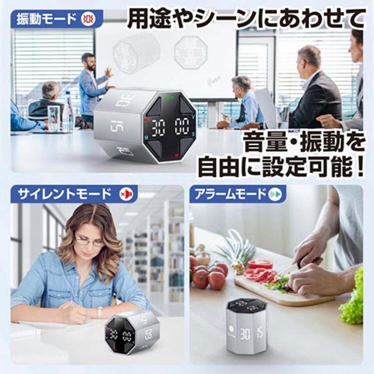 ●Ticktime Maxは、簡単なフリップで7種類のプリセットカウントダウン時間(3/5/10/15/30/45/60分)を提供。